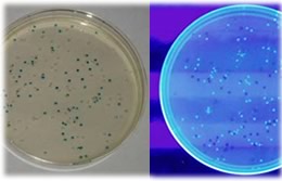 - 導入基因採用螢光蛋白(GFP)基因與β-半乳糖苷酶(LacZ)基因、耐藥性(氨苄青黴素耐藥性)基因3種。