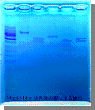 • For DNA detection, a very safe staining agent* (Mupid-Blue) is used, rather than highly carcinogenic ethidium bromide (EtBr).